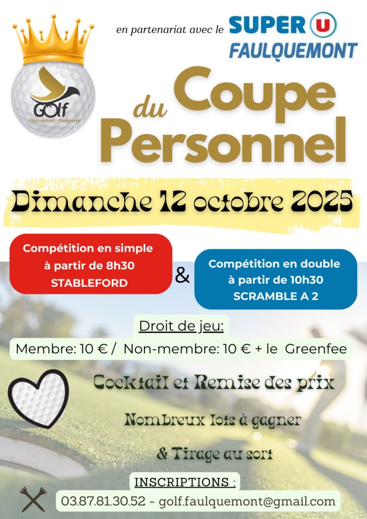 RESULTATS COUPE DU PERSONNEL RESULTATS 9TROUS JEUNES MERCI A TOUS !!!! Nous vous remercions pour votre présence et votre grande générosité, qui ont grandement contribué au succès de notre Coupe du Personnel. Merci à tous nos partenaires pour les nombreux lots et un grand Merci au SuperU de Faulquemont !!