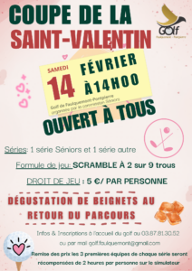 Évènements le 14 février 2026 › compétition Recherche et navigation de vues Évènements Afficher la recherche des Évènements Rechercher Évènements Jour du Navigation de vues évènement Options d’affichage ListeMoisJour « Jour précédent Jour suivant » 8 h 00 min Coupe de la Saint-Valentin 14 février @ 8 h 00 min - 17 h 00 min UTC+1 Voir les détails » + Exporter les évènements